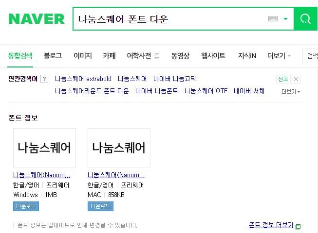 나눔스퀘어 폰트 다운로드