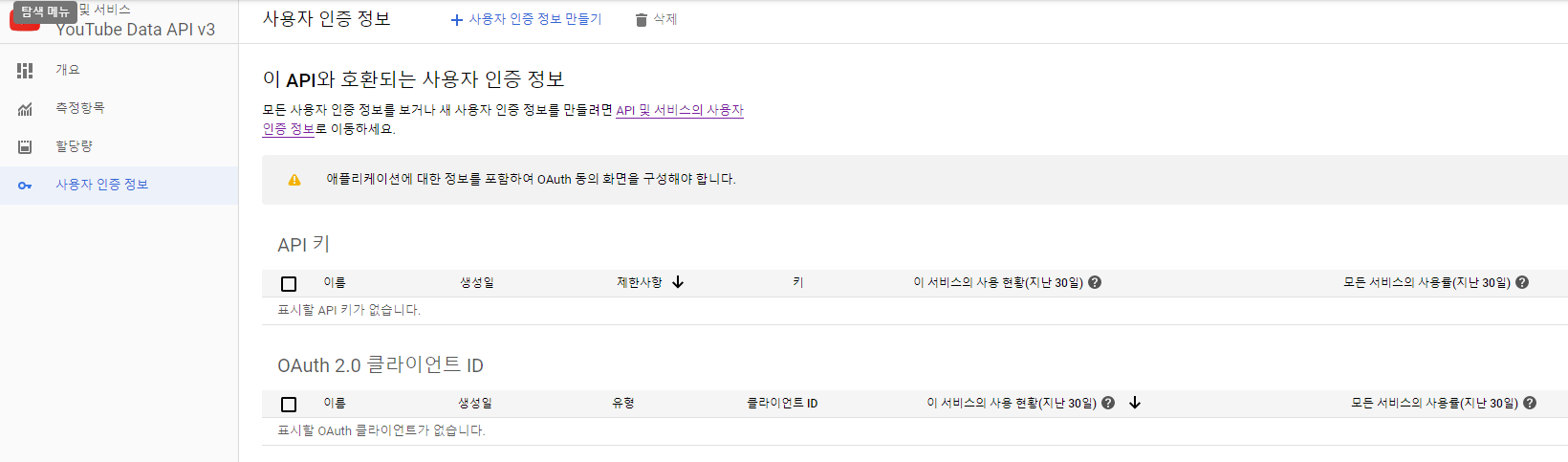 사용자 인증 정보 > [+사용자 인증 정보 만들기] 클릭